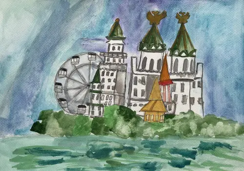 Меня очень вдохновили замки, мне кажется, что там живет Рапунцель. Она скидывает свои волосы и заплетает косу по два часа, а вечером она перебирается на колесо обозрения и смотрит на закат Москвы.