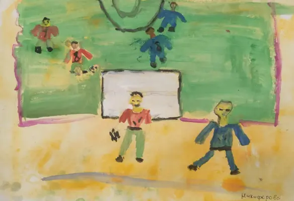 У нас во дворе футбольно-волейбольную площадку оградили сеткой, чтобы мяч не вылетал за пределы поля. А дети играют там все время. Это значит, что дети заняты делом. Я там тоже играю в футбол.