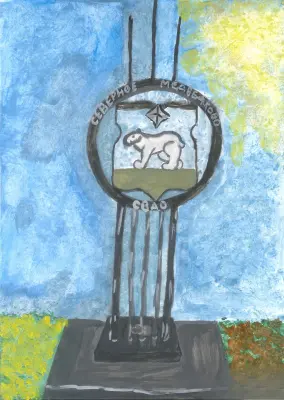 Эта стела обозначает район Северное Медведково. На ней изображены белый медведь и полярная звезда, которые также есть и на гербе нашего района. Вокруг обычно сажают красивые цветы.