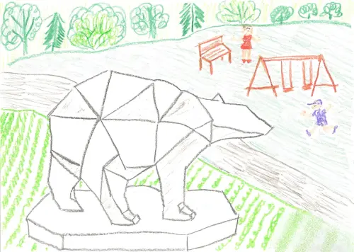 Эта скульптура стала главной достопримечательностью сквера. Белая медведица — символ района Северное Медведково. Скульптура напоминает оригами или драгоценный камень.