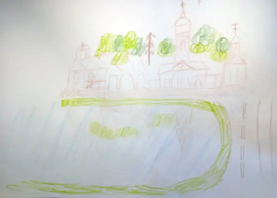 В этот храм я хожу с мамой каждое воскресенье, и для меня большая гордость нарисовать его. В этот храм я хожу с мамой каждое воскресенье, и для меня большая гордость нарисовать его. В этот храм я хожу с мамой каждое воскресенье, и для меня большая гордость нарисовать его. Каждый вечер мы гуляем с родителями вокруг пруда, и когда в свете фонарей отражается храм, я считаю что он показывает всю свою красоту.