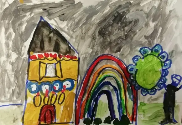 Я очень люблю рисовать. Я рисую свою семью, животных, деревья, природу. На моем рисунке изображен мой дом, радуга, деревья. Я люблю рисовать красками, мелками, карандашами.