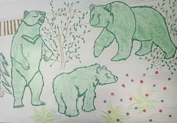 Большая инсталляция медведей, когда находишься рядом с ними, кажется, что ты попал в сказку, а сказки я очень люблю. Поэтому я их нарисовала, чтобы все могли окунуться в мир сказок.