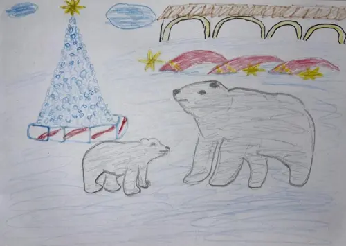 Каждую зиму мы с мамой приходим в Ростокинский акведук полюбоваться на Умку и его маму. Они такие забавные, почти как в мультике. Я очень люблю приходить сюда особенно зимой. Здесь так красиво. Горят рождественские звезды, елки сверкают своими неоновыми огнями. Весь Ростокино как будто в сказке.