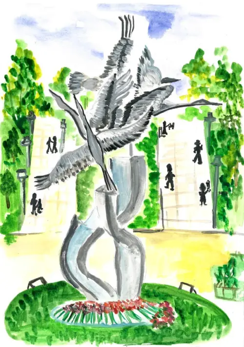 Стела была открыта 8 сентября 2018 года в парке «Отрадное» после его благоустройства по программе «Мой район». Монумент посвящен жителям Отрадного, погибшим в вооруженных конфликтах, и изображает четырех разлетающихся в разные стороны белых журавлей. Этот сюжет может быть знаком многим по песне из фильма «Летят журавли» в исполнении Марка Бернеса на стихи поэта Расула Гамзатова: