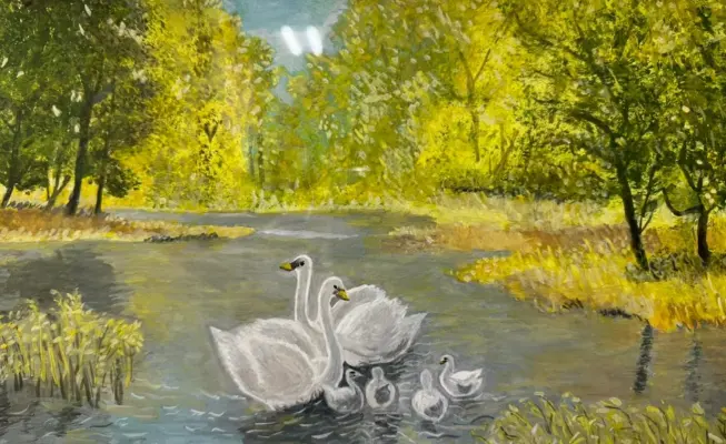 Лебеди на пруду