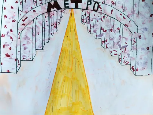 В Москве постоянно строится метро. Этой работой я хотела предложить идею для новых станций. Для оформления рисунка я использовала ягоды (вишня, клубника).