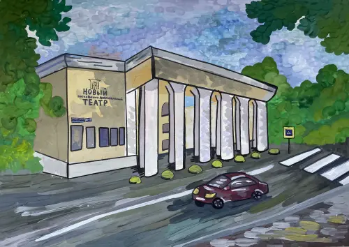 Я нарисовала Московский новый драматический театр, который находится в Ярославском районе, где я живу. Там большой репертуар спектаклей для взрослых и детей. Люблю посещать театр с родителями, особенно зимой перед Новым годом. Также ходила туда вместе с классом.