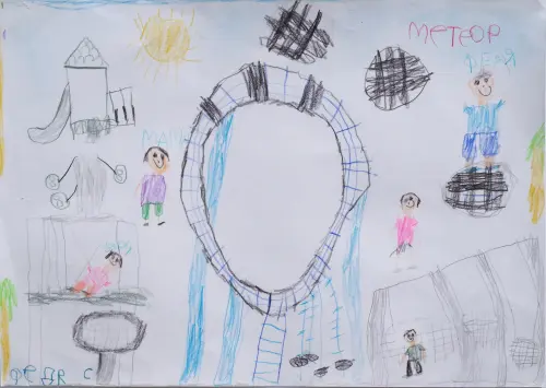 Меня зовут Федя, я очень люблю гулять на детской площадке в сквере кинотеатра Метеор с родителями и сестрой-двойняшкой Варей, играть там в салки с ребятами, прыгать на батуте и лазать по большой паутине, на площадке ещё есть много интересного: бревно, качели-гнёзда, воздушная карусель и всякие лазалки.