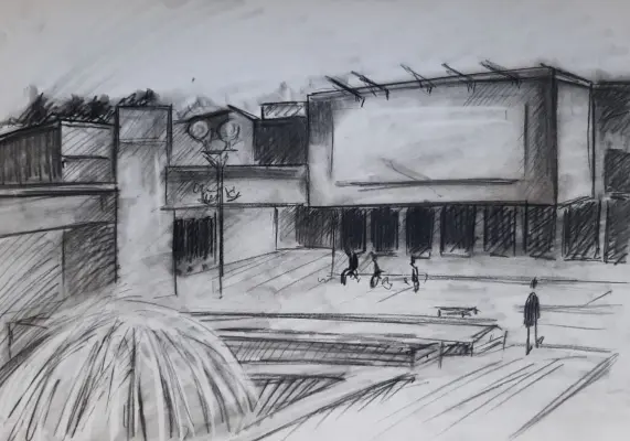 Но я решила отобразить его немного с другой стороны. Во время обычной, не праздничной жизни. Была суббота. Людей не много. Утро. Фонтан блестел и плескался под солнцем. Вдалеке, в тени, рисовали молодые художники. Человек шел в магазин. Было спокойно и светило летнее солнышко.