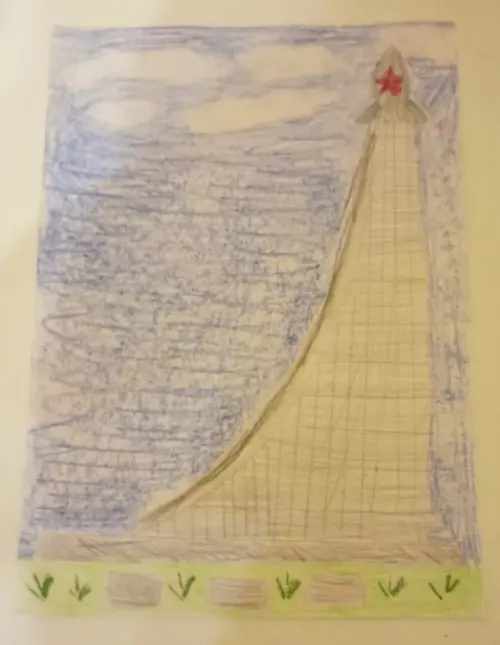 Недавно мы с бабушкой ездили на ВДНХ, меня очень впечатлил монумент «Покорителям космоса » своей высотой. Этот памятник был сооружен в память об освоении космоса. Я решила нарисовать этот памятник, чтобы все знали всю мощь и красоту памятников в Москве.