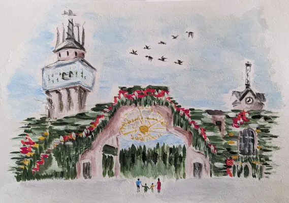 Я, прохожу мимо центрального входа, практически ежедневно. И, с восторгом наблюдаю, как он изменяется, в зависимости от сезона. Мои любимые образы — Зимний и Летний.