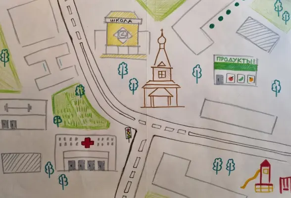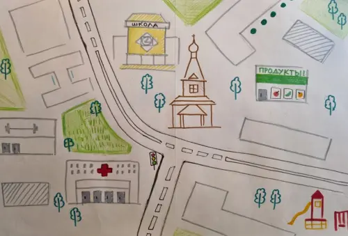 В этой работе отражен наш район. Всей семьей мы сначала думали, что нарисовать, а потом — как нарисовать. Папа предложил сделать схему- карту, чтобы потом ребенок мог ориентироваться в районе. В этой работе отражен наш район. Всей семьей мы сначала думали, что нарисовать, а потом — как нарисовать. Папа предложил сделать схему- карту, чтобы потом ребенок мог ориентироваться в районе.