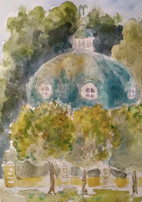 Облачный летний день в парке Кусково. В воздухе стоит знойное марево от неразразившейся грозы. Грот, один из павильонов, с противоположной стороны пруда казался затерянным в густой зелени деревьев. Изящный, украшенный витыми раковинами, он, кажется, олицетворяет само XVIII столетие.
