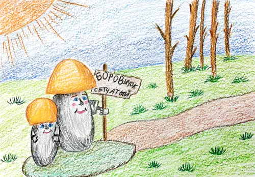 Я люблю гулять в парке «Северное Тушино» с родителями. Однажды там проходила выставка сказочных скульптур, которая мне очень понравилась. Мой рисунок выполнен акварельными карандашами.