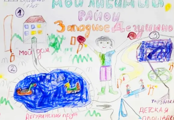 Я люблю гулять по своему району, у меня во дворе много интересных мест для игр. Недалеко от дома находится Дегунинской пруд с красивыми фонтанами и домиками для уток. В каждом дворе стоят разнообразные детские площадки. А с мамой в праздничные дни мы заходим в храм «Бориса и Глеба», на самой высокой башне висят колокола, с красивым звучанием.
