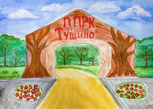 Я люблю вместе с родителями гулять в парке «Северное Тушино», там очень красиво весной и летом, так как много цветущих деревьев и газонов с различными цветами. Мой рисунок выполнен акварелью