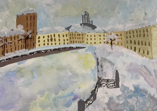 Зима - моё любимое время года. Я очень люблю гулять зимой по набережной в моём любимом районе, смотреть на замерзшую воду, покрытую толстым слоем льда.