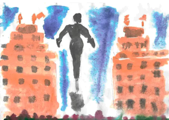 Когда мы едем домой в наш район, то часто проезжаем памятник первому космонавту Юрию Гагарину. Его ещё называют Железный Человек, ведь он сделан из блестящего железа и выглядит сильным, смелым героем, которого любят показывать в мультфильмах и фильмах. Кажется, что он вот-вот полетит вверх. На фоне изображены красивые дома, словно большие ворота, ведущие прямо в Москву. Это такие высокие здания, украшенные фигурками, окошками и балконами. Будто они сами открывают вход в город и говорят нам: «Добро пожаловать домой!»