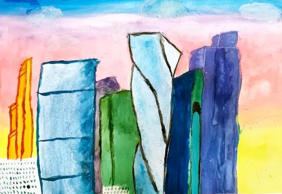 Наш город строится и развивается. Красивые здания из стекла и бетона возвышаются на набережной Москвы-реки. Это район Москва-Сити. Мне нравится здание, закрученное вокруг себя. В многочисленных окнах отражаются лучи заходящего солнца. Это стало любимым местом не только жителей города, но и гостей столицы.