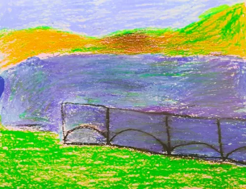 Работу «Пруд» я выполнял масляной пастелью. На пленэре очень удобно рисовать сухими материалами. На работе изображён пруд в Терлецком парке. Я его очень люблю.