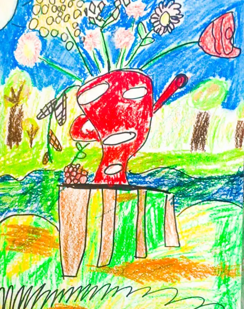 На пленэре в Терлецком парке у нас было очень интересное задание: нам нужно было изобразить натюрморт на фоне природы парка. Это было необычно, но увлекательно.