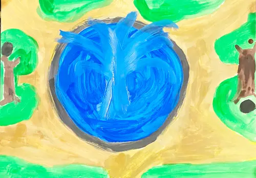 На картине изображен парк, в котором находится фонтан. Я люблю гулять в этом парке, там очень красиво, мне нравится брызгать водой из фонтана. Там красиво поют птички.