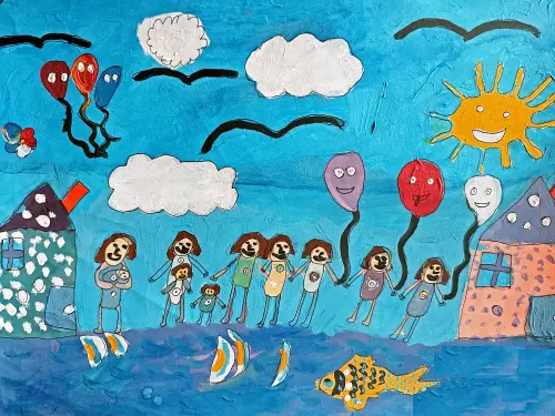 У меня большая семья. Мама, папа, три сестры и четыре брата. Мы любим вместе ходить гулять. Очень нам нравятся парки, где нет машин и можно бегать. Особенно те, где есть водоёмы. В парке Дружбы мы кормим уток. В парке Северного речного вокзала смотрим на корабли.