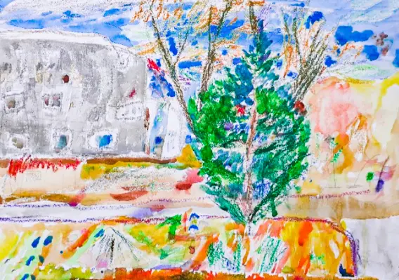 В своей работе я нарисовала центр досуга и спорта, который находится в нашем районе. Мы рисовали на пленэре с изостудией «Радуга». Я первый раз рисовала за мольбертом.
