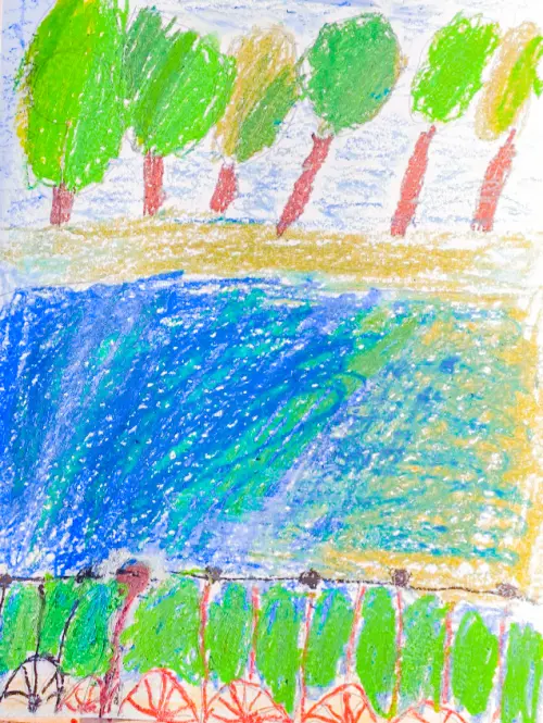 Я живу в очень красивом месте. В нашем районе находится замечательный парк со старинными дубами – Терлецкая дубрава. Я нарисовала нашу дубраву с прудом.