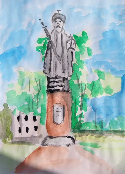 Екатерина занимается рисованием, пробует различные темы: от природы до портрета. Рисунок посвящён теме «Районы Москвы». Памятник Даниилу Московскому стоит в Даниловском районе, недалеко от метро Тульская
