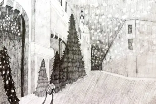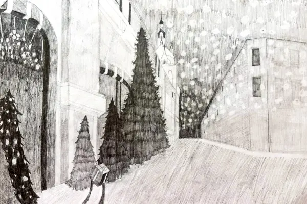 Улочки Москвы прекрасны в любое время года. Но зимняя, праздничная Москва меня вдохновляет больше. Заснеженные улочки, искрящийся снег под ногами и запах Рождества. Это впечатляет! И ты берешься за карандаш.