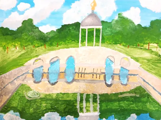 На рисунке изображена часовня «Иордань» рядом с Покровским старообрядческим собором. Расположена в 77-ом квартале Хохловки. Очень красивая часовня, как и пруд. Хорошее место для прогулок.