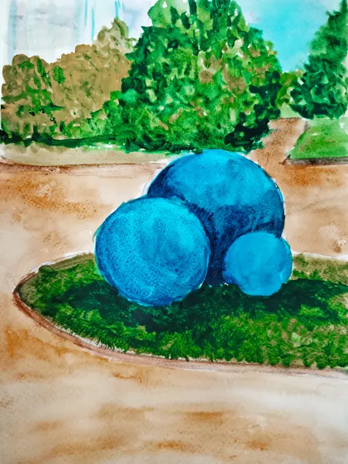 Шары на центральной аллее станции метро «Бульвар Дмитрия Донского» вдохновили меня на создание этой картины. Работа выполнена акварелью и сделана с душой.