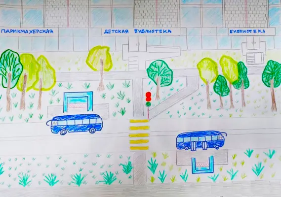 Я каждый день прохожу по этой улице и не устаю удивляться тому, что я живу в таком замечательном месте. Особенно мне нравится именно этот кусочек Ташкентской улицы, где располагаются две библиотеки: взрослая и детская. И, конечно же, притягивают взгляд аккуратные ровные бетонные дорожки, много деревьев, кустарники, зелёные газоны, пешеходная «зебра», разноцветные огоньки светофора. Ещё мне нравятся синие автобусы, их цвет мне напоминает чистое небо.