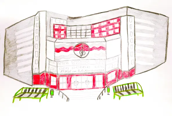 Я нарисовала музыкальную школу в районе Лианозово. Я очень люблю музыкальную школу нашего района. В школе учится мой брат и мои друзья. Им очень нравится музыка и мне тоже.