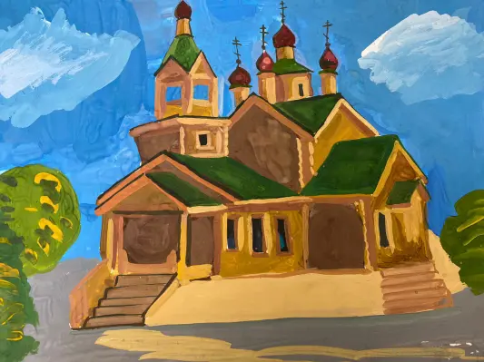 Храм деревянный, достаточно большой, выполненный в старинном русском стиле. Видно, что ухаживают с любовью. Очень нравится большая территория, зеленая, высажены цветы, а вокруг много яблонь с яблоками. В это место можно прийти в любое время года и получить только положительные эмоции.