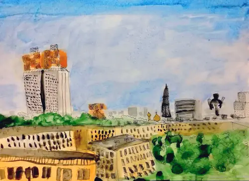 Сначала мы жили на 6-м этаже, и из комнаты было видно только жилой дом и Президиум РАН. Но потом мы переехали на 9-й, и нам стала видна вся Москва! И памятник Гагарину! И Шуховская башня! И Донской монастырь! И Воробьёвы горы! И много чего ещё. Даже Кремль немного видно (если сильно приглядеться).