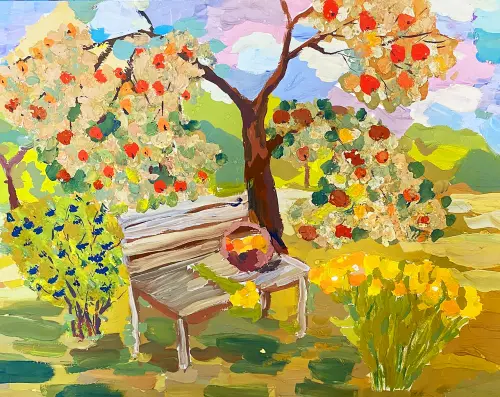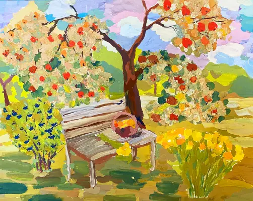 На рисунке изображен яблоневый сад нашего района Нагатино-Садовники.