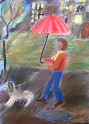 На рисунке изображено, как я гуляю в районе со своей любимой собакой.