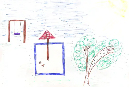 У нас хороший двор. У нас растут берёзы и есть качели, на которых мы катаемся. Ещё у нас есть песочница с жёлтым песком и всегда светит солнце. Много детей приходит к нам во двор.
