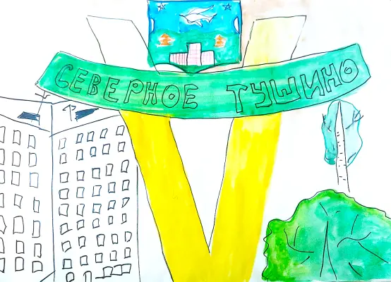 При въезде в Северное Тушино стоит монумент нашему району. Около него есть хороший и замечательный скверик. Приходите к нам в гости, в наш яркий район.