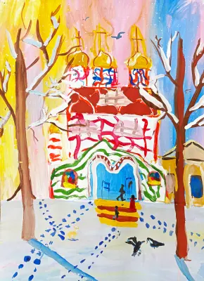 В нашем районе сносят многие дома и строят новые, и мы с мамой на праздники ходим гулять к этому храму. Он красивый и очень нарядный, и мы долго ходим и фотографируем его.