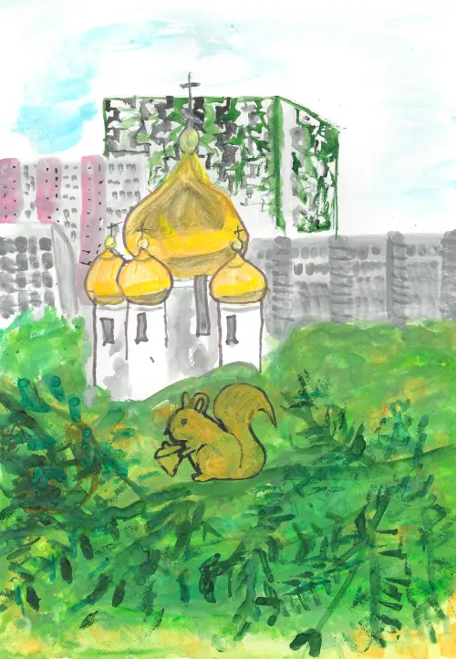 В целом, этот рисунок – яркий и позитивный взгляд ребёнка на мир, в котором есть место и для панельных домов, и для пушистых белочек. Это маленький кусочек жизни, запечатлённый на бумаге детской рукой.