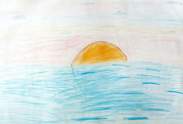 Я живу на Большой Набережной, и из нашего окна открывается очень красивый вид на канал. И я представляю, будто я на море. Я люблю рисовать этот рассвет.