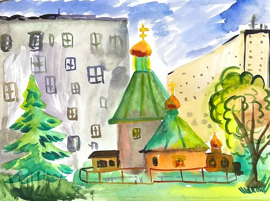 В храм мы ходим с дедушкой по выходным. Ещё мне нравится приходить, когда проходят праздничные службы. Храм рядом с моей школой. Я любуюсь территорией вокруг нашей церкви.