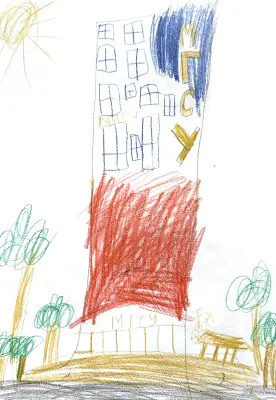 Я нарисовал МГСУ МИСИ, там замечательный парк, где я часто гуляю со своей семьёй. Мы катаемся на велосипедах, занимаемся на спортивной площадке, играем в футбол, ходим в бассейн.