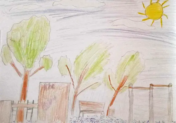 Окна нашей квартиры выходят на тенистую аллею. Я часто вижу, как там занимаются скандинавской ходьбой, бегают и подтягиваются на тренажёрах. А ещё дедушки играют за столом в шахматы и шашки.