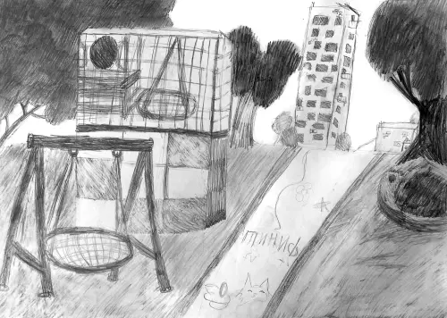 Я живу в мегаполисе с высокими домами. Но даже среди этих домов есть уютные дворы. Мой - один из них. Есть зелёные деревья, детские площадки с качелями и лазалками
