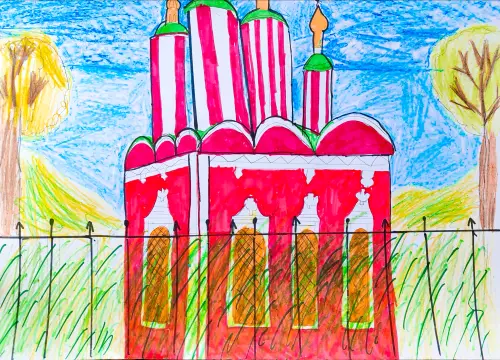 Сейчас и сама церковь, и территория вокруг очень уютные, от них исходит покой, радость и красота. Мы с мамой любим там гулять и иногда ходим в храм. Когда говорят о нашем районе, мне сразу приходит в голову наша церковь, поэтому я её и нарисовала.